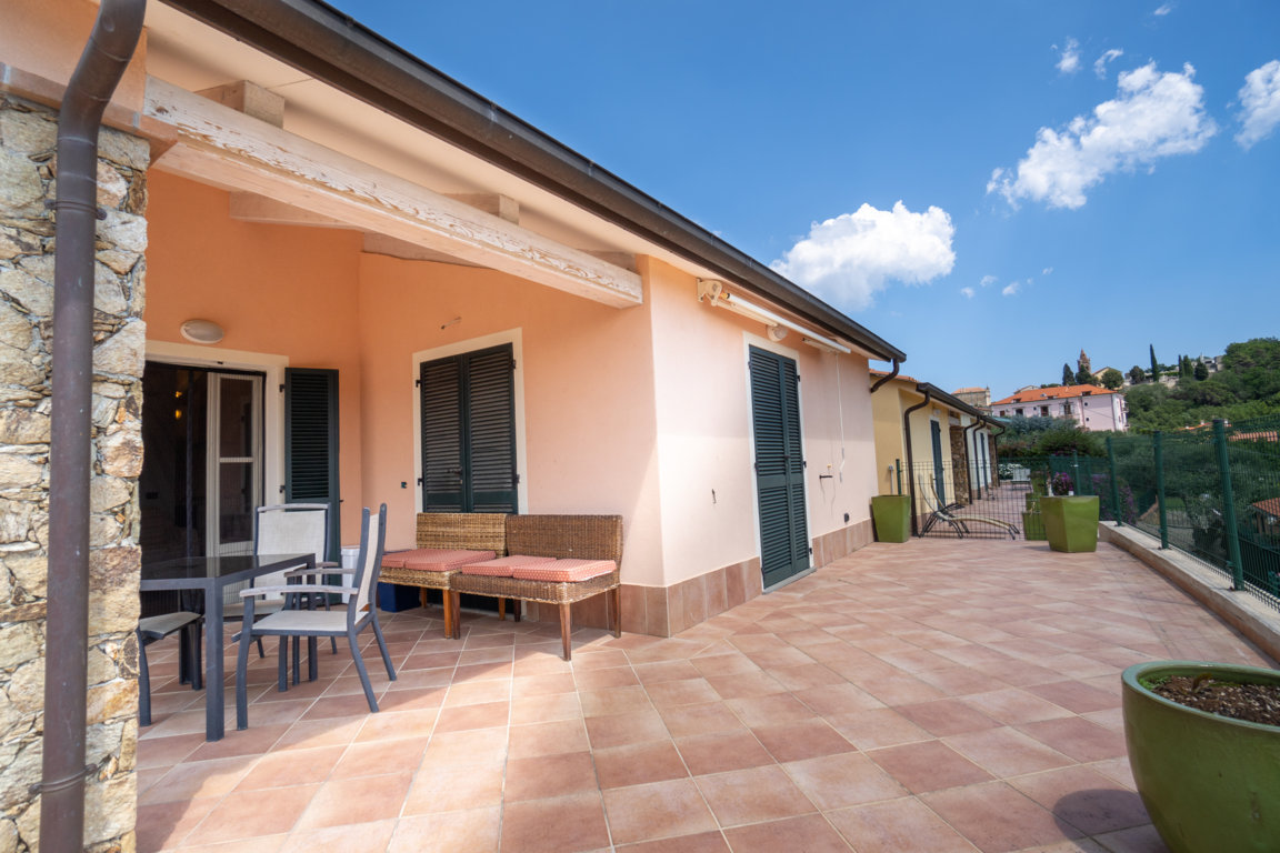 Villetta indipendente PRONTA CONSEGNA all'interno del complesso Residenza VILLA IL CASALE, con terrazzo di mq 150 piu Giardino mq 100 - scorcio vista mare - soleggiata tutto il giorno e con incredibile vista panoramica tra uliveti e frutteti. Arredata con finiture di pregio, garantendo un comfort immediato. Classe energetica "A" progettata per il risparmio energetico, con serramenti in legno pregiato e riscaldamento autonomo Daikin. La villa, costruita nel 2018 e completamente ristrutturata, è adatta anche per persone con mobilità ridotta grazie agli accessi adattati. L'immobile si compone da un salone luminoso, cucinotto, due camere da letto, due bagni, patio e terrazzo che si affacciano su giardini rigogliosi. Goditi la vista mozzafiato sul mare mentre ti rilassi nel giardino panoramico o fai un tuffo nella piscina riscaldata. Il resort offre anche un prato inglese ombreggiato da ulivi, ristoranti con terrazze panoramiche, cocktail bar e un centro benessere per il tuo relax. Le spese condominiali circa 50 Euro al mese. Potrete usufruire di tutti i servizi del resort prenotandoli "a la carte". Non perdere l'opportunità di vivere immerso nel verde e nella natura, con il mare a portata di mano. Possibilita' di cantine di mq 10 ideali per ricoverare moto/motorini/bike, cabina armadio. Possibilità di piu posti auto privati. Ricarica auto elettrica. Contattaci per maggiori informazioni e per prenotare una visita.